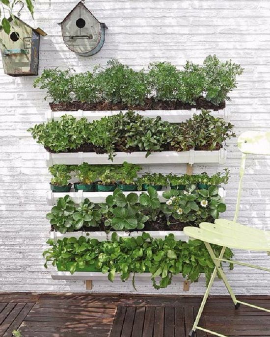 • Cut holes in a standing PVC pipe and plant strawberries or herbs.