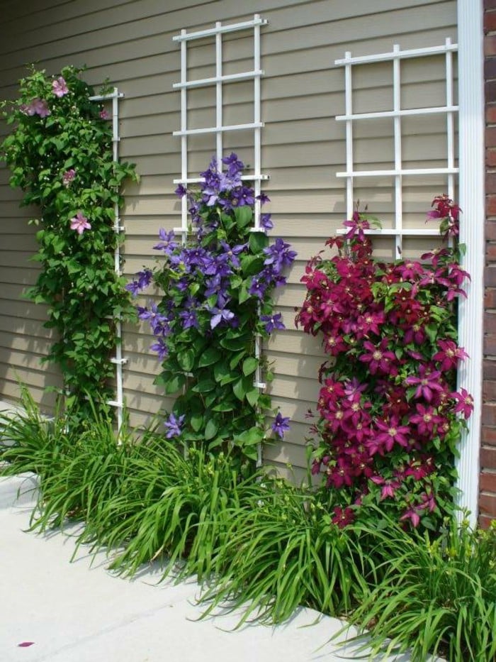 • Clematis – Ideal for sun or partial shade, available in a variety of colors.