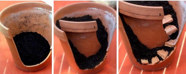 If you want to create a broken pot project but don’t have a naturally broken one, you can intentionally shape a pot for your design.