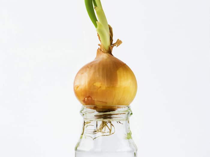 In a few weeks, you’ll notice green shoots. Eventually, it will bulb into a new onion.
