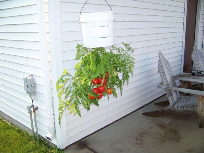 10. Buckets as Upside-Down Tomato Planters