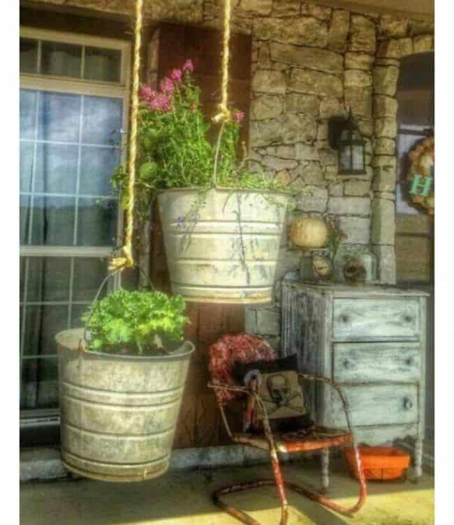 Buckets make excellent portable flower gardens. Fill them with seasonal blooms like petunias, marigolds, or pansies, and place them around your porch, patio, or entryway.