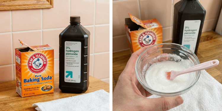 - mix baking soda with enough hydrogen peroxide to form a thick consistency