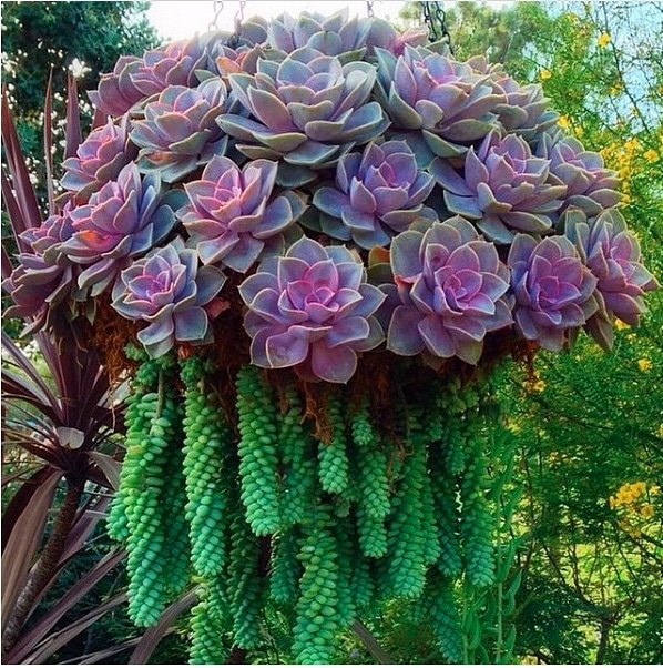 Low Maintenance: Succulents thrive on neglect. They require very little water and can tolerate dry conditions, making them perfect for hanging baskets.