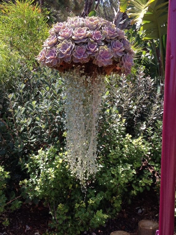 Perfect for Hanging: Many types of succulents trail or drape naturally, which creates the tentacle effect needed for a jellyfish design.