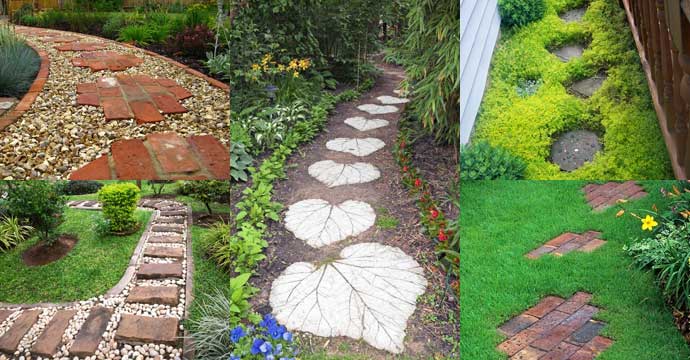 Want to add a whimsical or romantic flair? Try placing concrete stepping stones with heart-shaped imprints over a rustic red brick path.