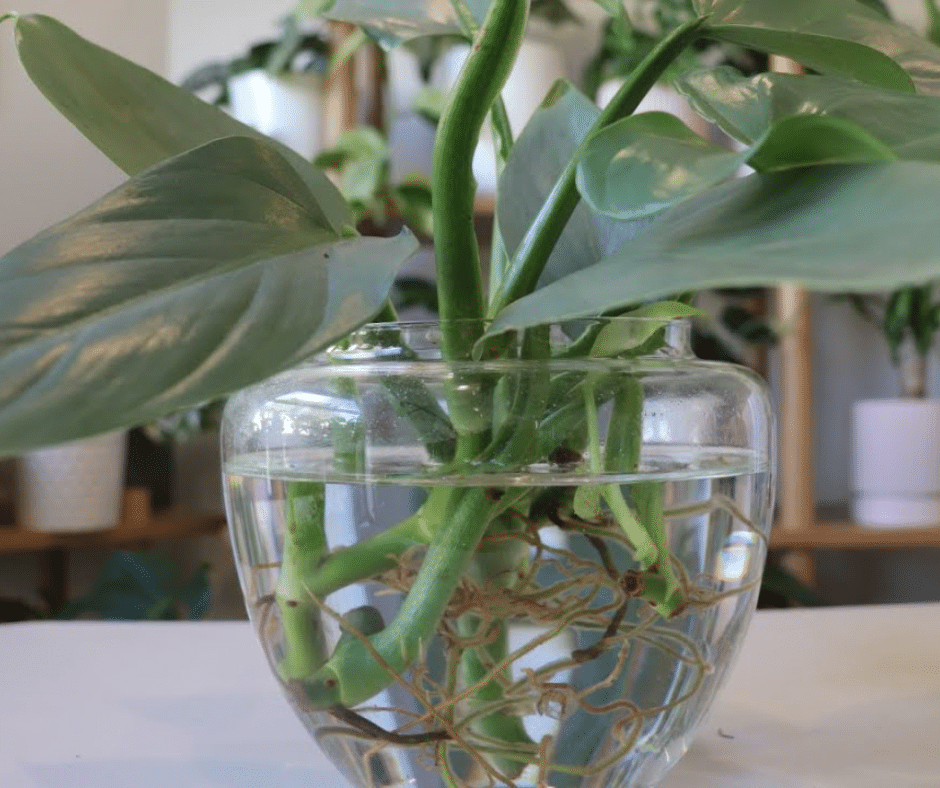 Cut a vine section just below a leaf node (the small bump where roots will form). Place the cutting in water until roots are about 2–3 inches long, then plant it in soil.