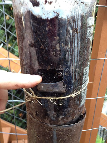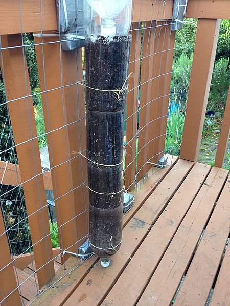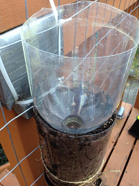 - Secure the base by tying the bottom of the bottle to a supporting structure such as a chain-link fence, trellis, or wire mesh.