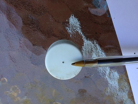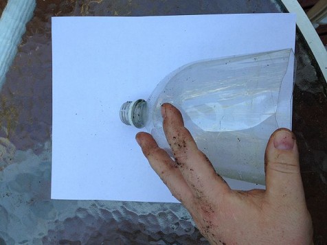 - Create two drainage holes on opposite sides, about three inches from the cap. Make sure they are smaller than a Bic ballpoint pen tip to prevent soil leakage.