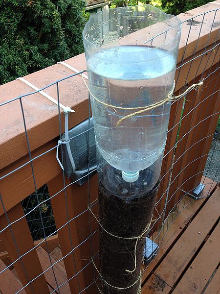 - Cut a small hole in the cap of the watering bottle to control the drip rate.