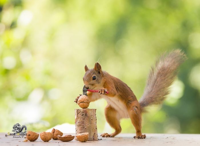 His photographs prove this, as he plays chess with them, gets them to ride bikes, and gives them instruments to play. He manages to set up scenarios where squirrels are doing human-ass things and snap the perfect photo.