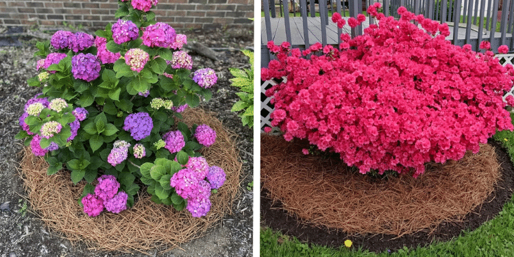 Popular ornamental favorites like Azaleas, Rhododendrons, and Camellias will thrive under a pine needle mulch, as it helps maintain the low pH they require to absorb iron effectively.
