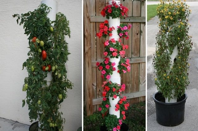Stacked planters allow you to grow multiple plants in a small footprint.