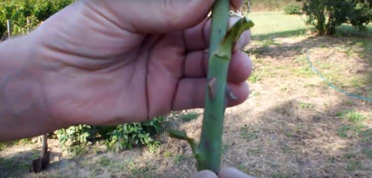 • Choose a healthy rose stem that is green and flexible, not woody or dry.