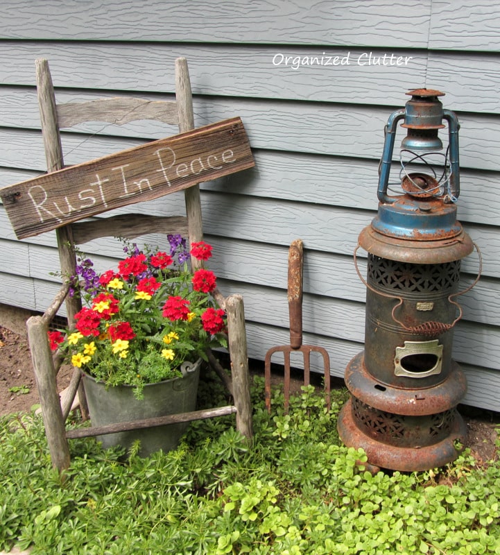 - Repurposed chairs – Remove the seat and place a planter inside.
