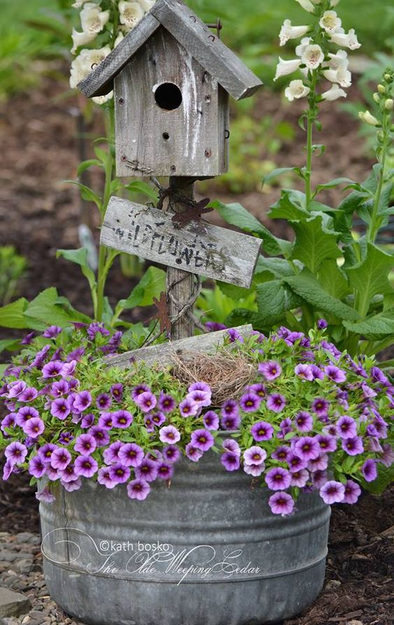 - Rustic wheelbarrows – Filled with colorful blooms, they make a stunning focal point.