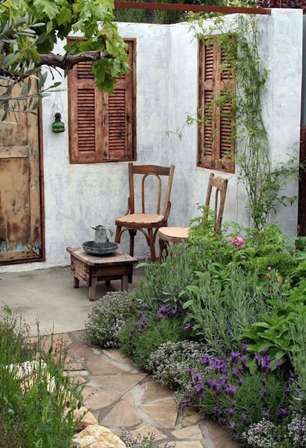 A country garden isn’t complete without a cozy seating nook where you can relax and enjoy the outdoors.