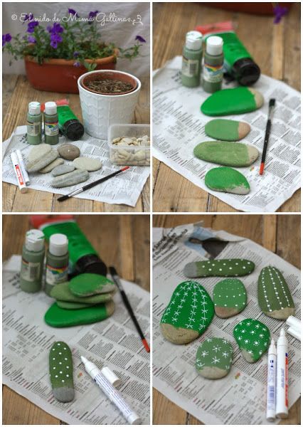 Collect stones with interesting, rounded shapes that resemble cactus pads or stems. Wash them thoroughly and let them dry completely to ensure the paint adheres properly.