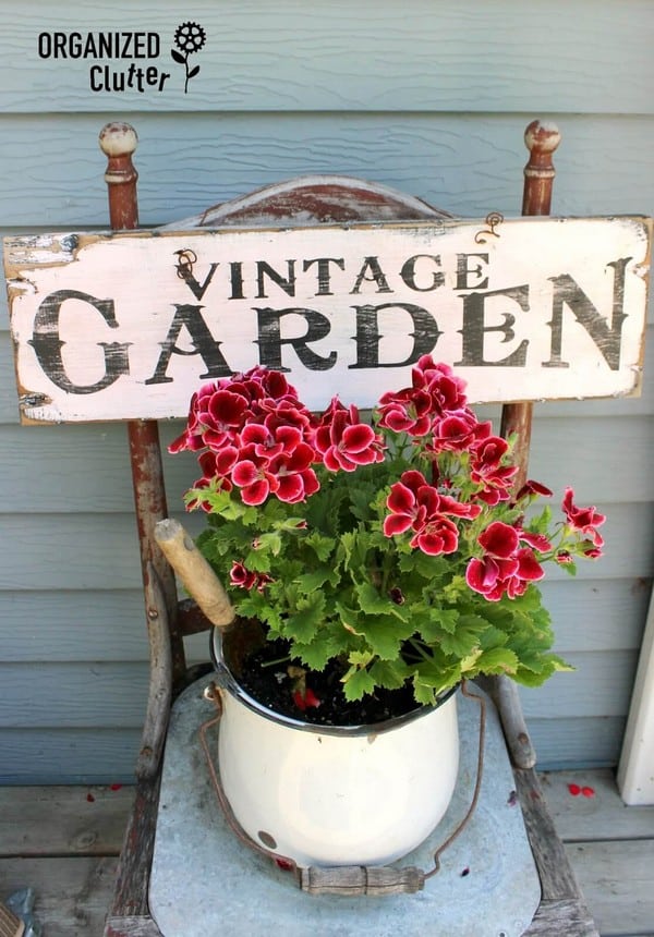 Repurpose an old wooden chair by painting a vintage garden sign on the backrest. This adds a nostalgic and charming feel to your space.
