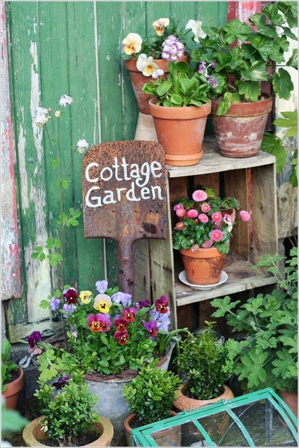 9. Cottage Garden Sign on a Shovel