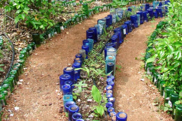 2. Glass Bottle Garden Bed Edging