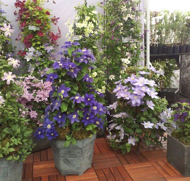With large, star-like flowers, clematis can easily become the focal point of any patio or terrace.