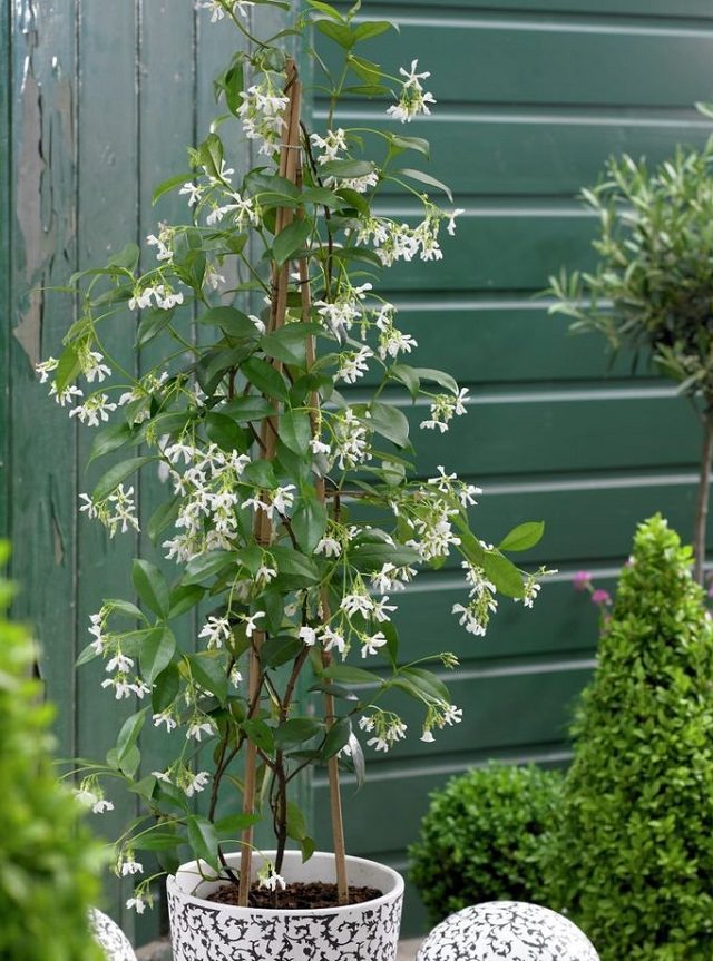 Common jasmine is celebrated for its highly fragrant, white star-shaped flowers that bloom from summer into autumn.