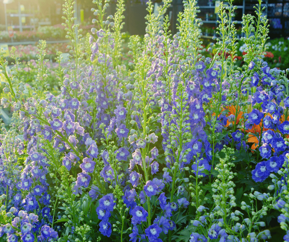 Delphiniums are a talented flower with an incredible shape that captures attention. These blooming flowers come in many colors including purple, blue, pink and white.