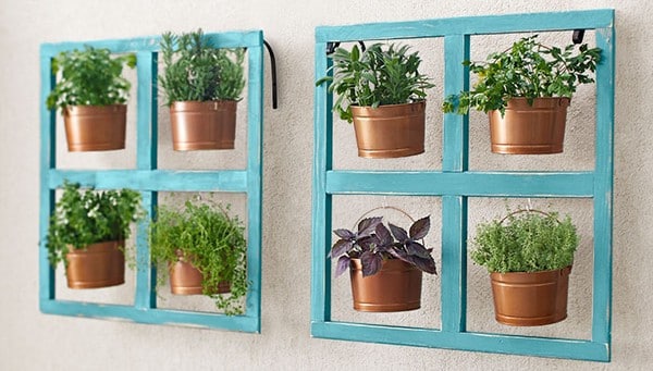 A rustic hanging herb planter adds character and function to your home’s exterior.