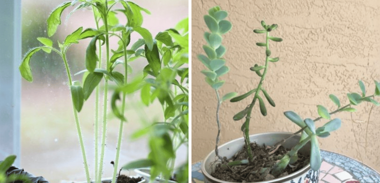 Instead of growing compact and bushy, your plant’s stems become long and stretched, with leaves spaced far apart along thin, weak stems.
